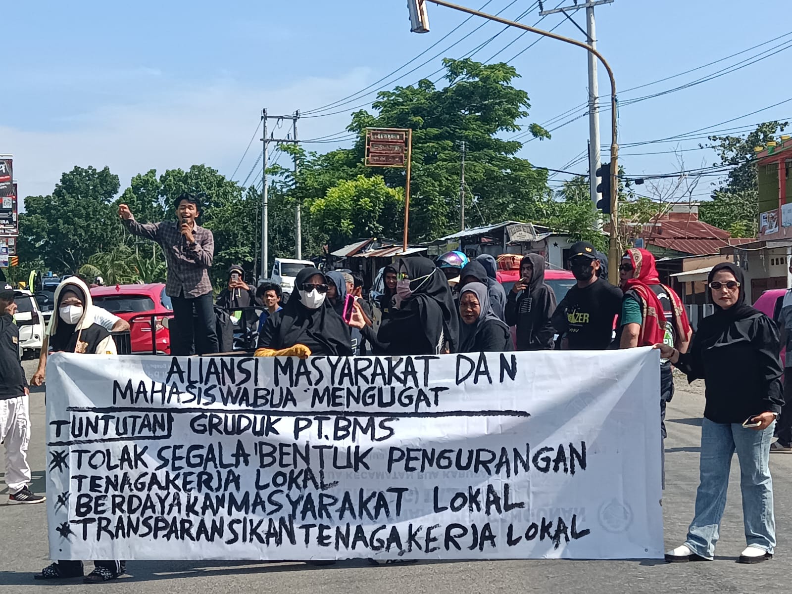 Dalam orasinya, mereka menolak pengurangan bagi warga lokal (Kecamatan Bua) yang sebelumnya sudah bekerja di PT BMS. Para demonstran juga menuntut perusahaan pabrik smalter untuk memperdayakan masyarakat lokal, dan transparani tenaga lokal.
