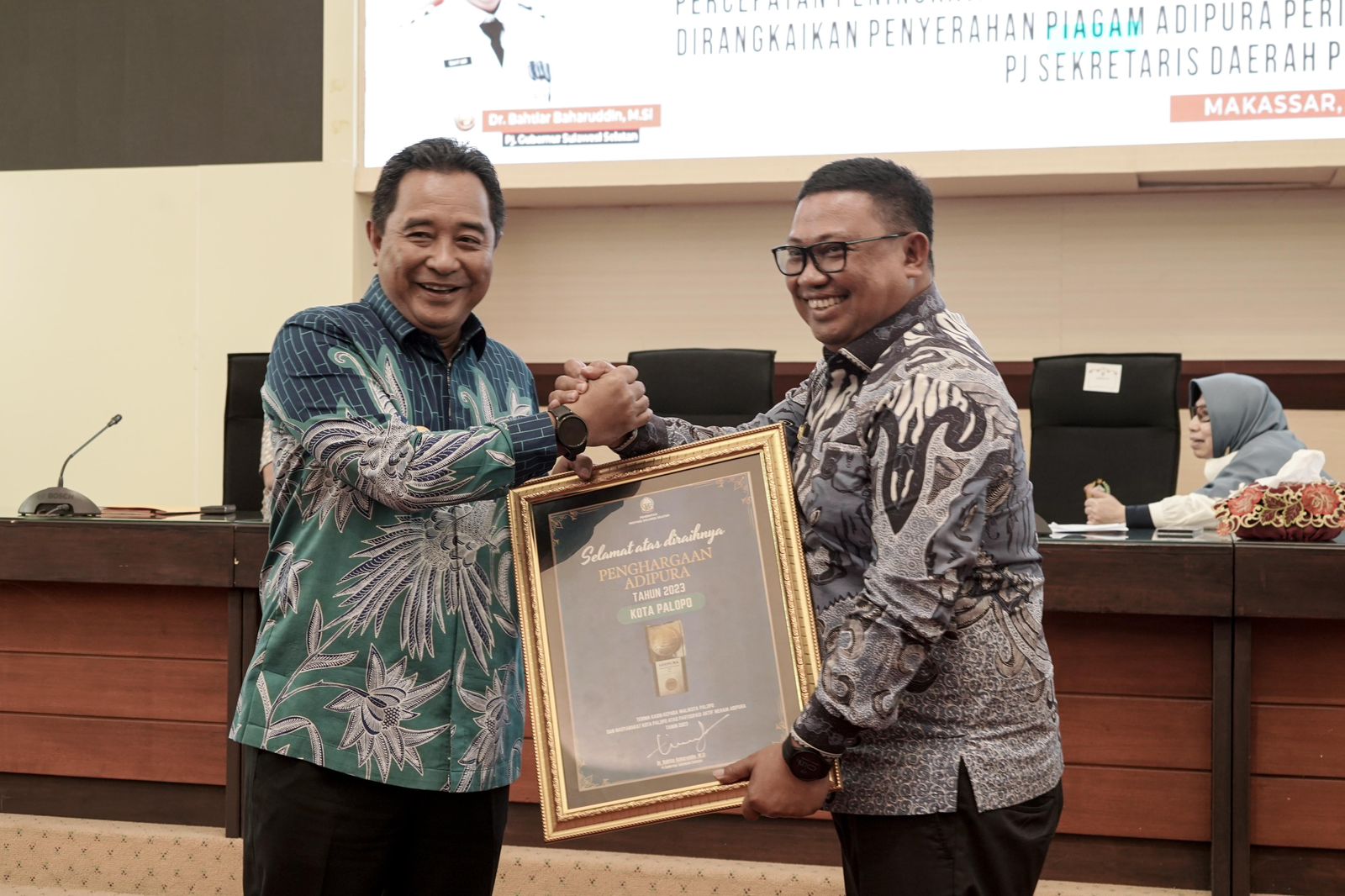 PALOPO – Pj. Wali Kota Palopo, Asrul Sani, SH, M.Si, menerima penghargaan Adipura 2023 dari Pj. Gubernur Sulawesi Selatan, Dr. Bahtiar Baharuddin. Penyerahan penghargaan tersebut bertempat di ruang kerja Gubernur Sulsel, Jumat (15/03/2024) dan diserahkan langsung oleh oleh Pj. Gubernur Sulsel.
