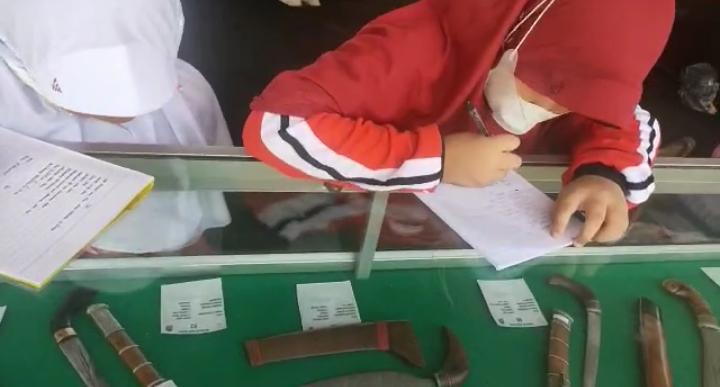 “ Guru saya memberikan tugas untuk mencatat nama, tanggal pembuatan, usia, dan asal muasal benda pusaka yang sedang dipamerankan di sini,” katanya.