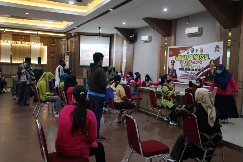Dalam rangka menyambut HUT Bhayangkara ke 76, Polres Palopo melaksanakan vaksinasi massal di aula Tantya Sudhirahajati Polres Palopo, Jumat (17/06/2022)