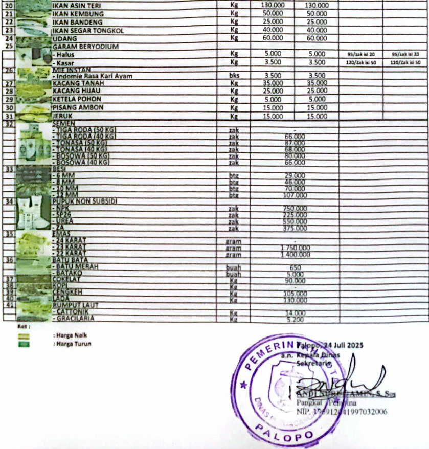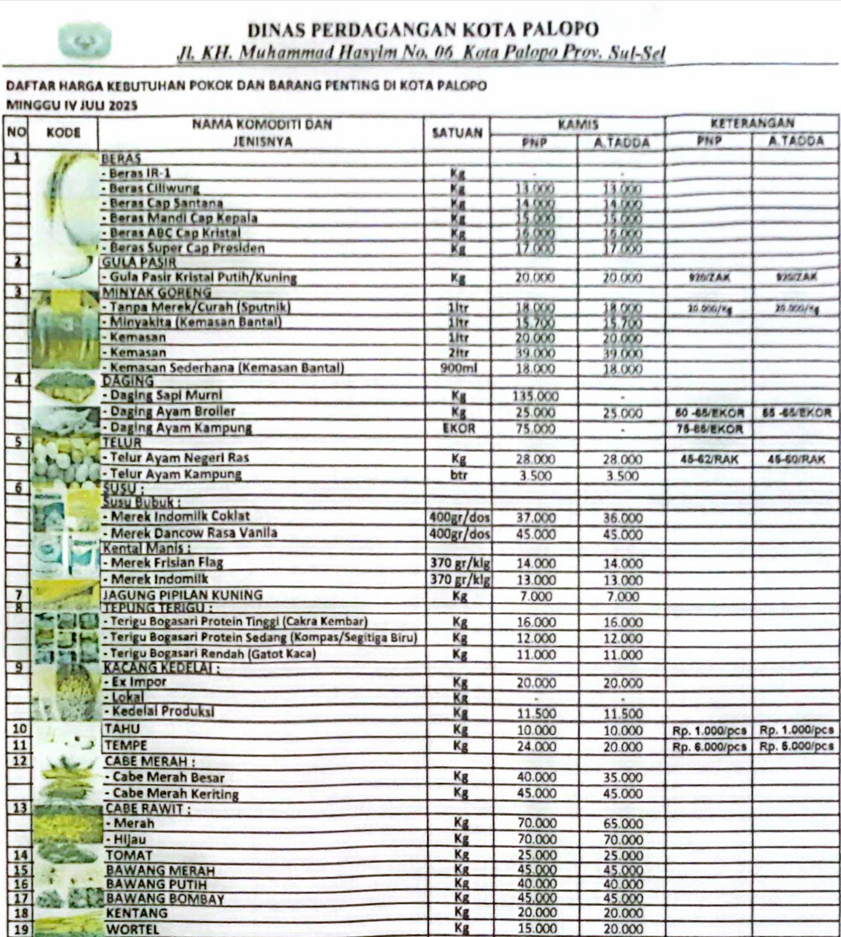 PALOPO — Pemerintah kota Palopo melalui Dinas Perdagangan bekerjasama dengan media Online Ritmee.co.id mengumumkan daftar harga bahan pokok dan barang penting di kota Palopo.