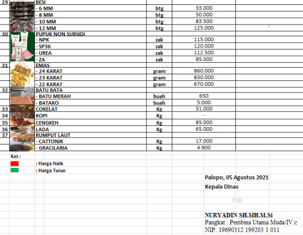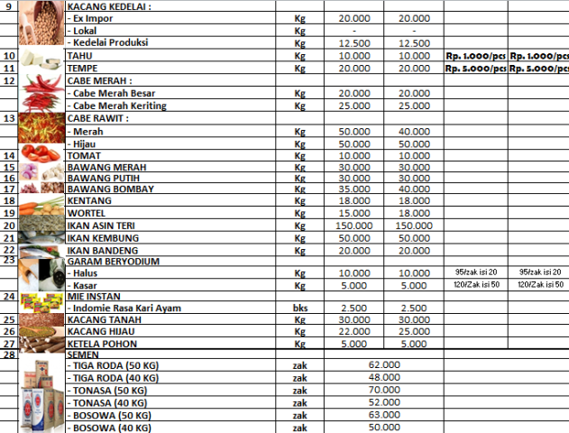PALOPO — Pemerintah kota Palopo melalui Dinas Perdagangan bekerjasama dengan media Online Ritmee.co.id mengumumkan daftar harga bahan pokok dan barang penting di kota Palopo.