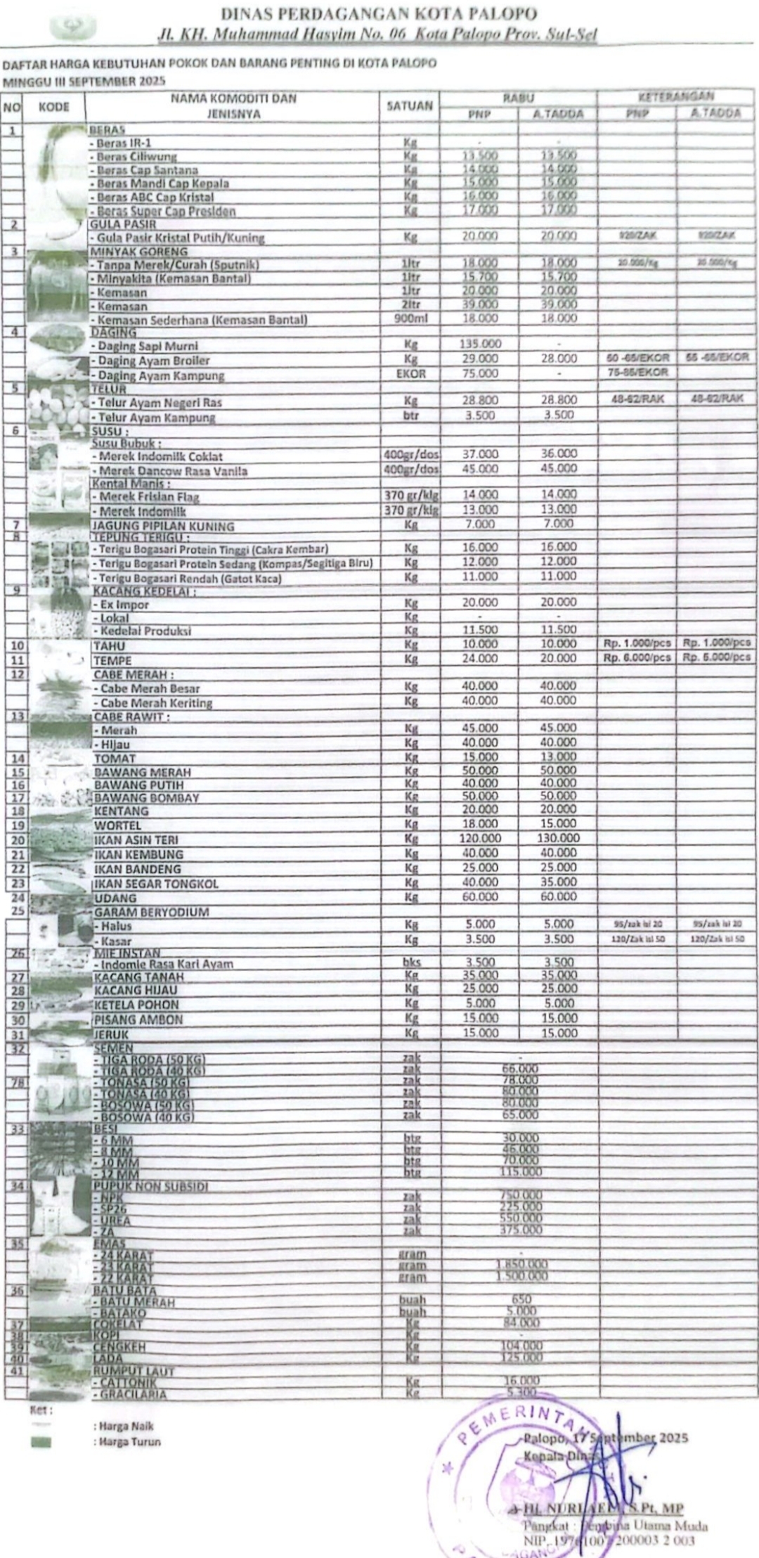 PALOPO – Pemerintah kota Palopo melalui Dinas Perdagangan bekerjasama dengan media Online Ritmee.co.id mengumumkan daftar harga bahan pokok dan barang penting di kota Palopo.