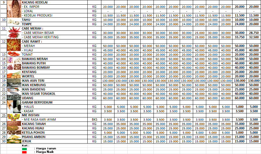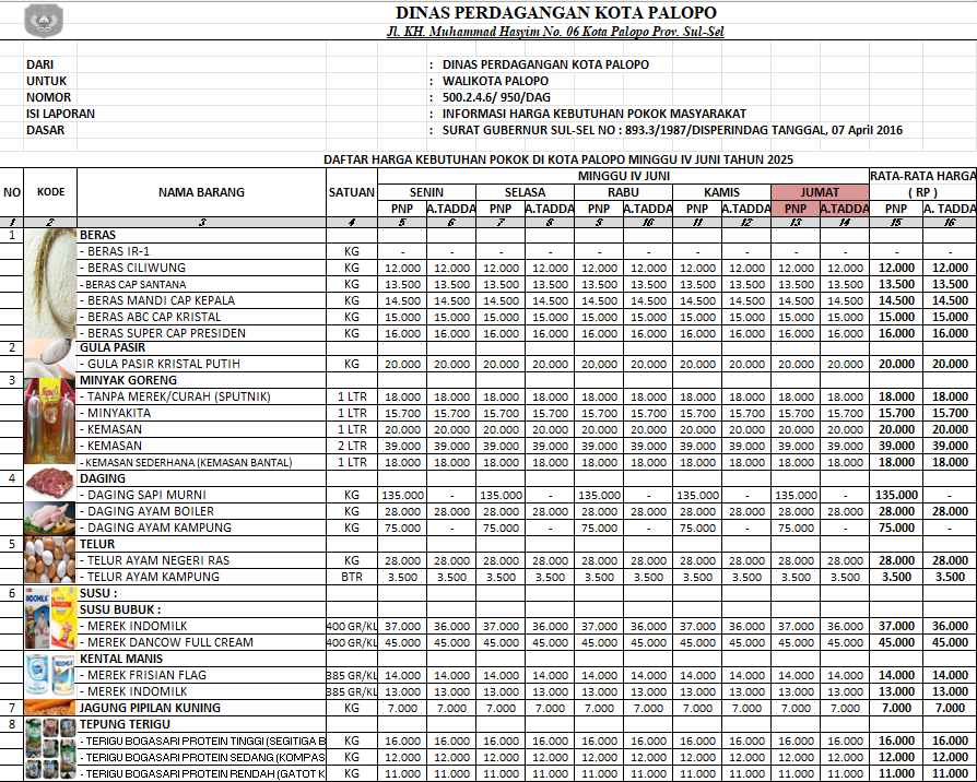 PALOPO — Pemerintah kota Palopo melalui Dinas Perdagangan bekerjasama dengan media Online Ritmee.co.id mengumumkan daftar harga bahan pokok dan barang penting di kota Palopo.