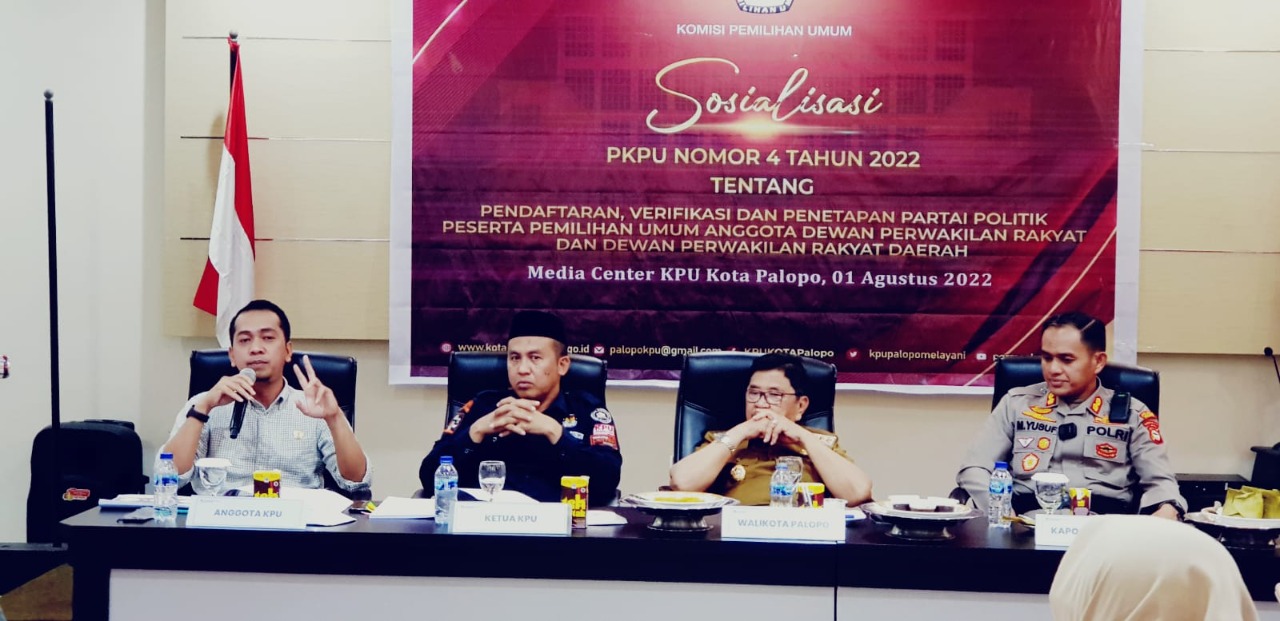 Oleh karenanya untuk memberi pemahaman kepada seluruh stakeholder khususnya pengurus partai politik yang ada di daerah maka KPU Kota Palopo melaksanakan sosialisasi tentang Peraturan Komisi Pemilihan Umum (PKPU) Nomor 4 Tahun 2022 tentang Pendaftaran, Verifikasi dan Penetapan Partai Politik Peserta Pemilu Anggota Dewan Perwakilan Rakyat dan Dewan Perwakilan Rakyat Daerah sebagai payung hukum pelaksanaan tahapan yang dimaksud, di Media Center KPU Kota Palopo, Senin (01-08-2022).