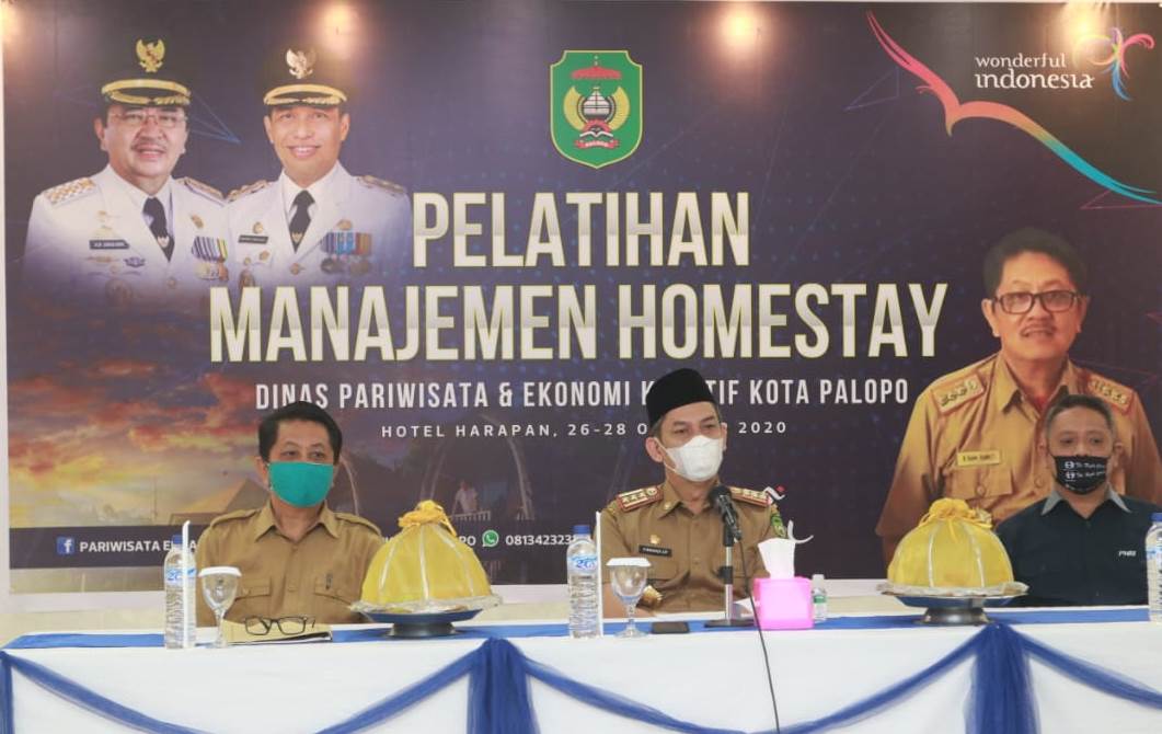 PALOPO — Pemerintah Kota Palopo melalui Dinas Pariwisata dan Ekonomi Kreatif (Disparekraf) menggelar kegiatan pelatihan Manajemen Home Stay yang di laksanakan di Hotel Harapan, Senin (26/10/2020).