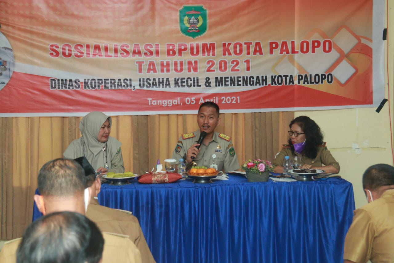 PALOPO — Pemerintah kota Palopo melalui Dinas Koperasi dan UKM menggelar sosialisasi Bantuan Produktif bagi Pelaku Usaha (BPUM) yang dilaksanakan di Aula Dinas Koperasi dan UKM kota Palopo, Senin, (5/42021).