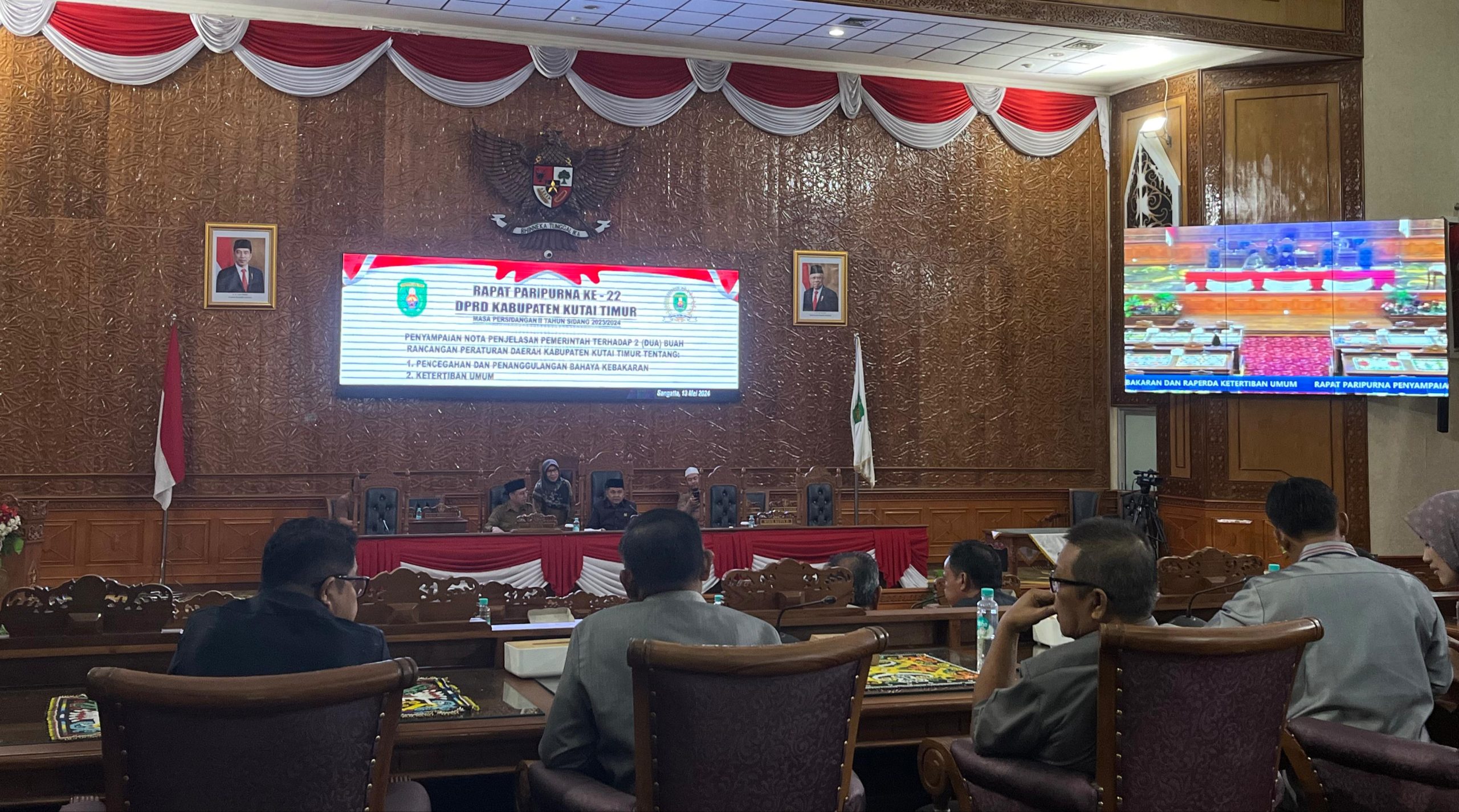 Hal itu diungkapkan saat rapat paripurna DPRD Kutim dengan agenda mendengarkan pandangan fraksi DPRD Kutim mengenai dua raperda usulan pemerintah, Selasa (14/5/2024). Dua raperda usulan pemerintah itu adalah Raperda tentang Penanggulangan dan Pencegahan Bahaya Kebakaran, serta Raperda Ketertiban Umum.