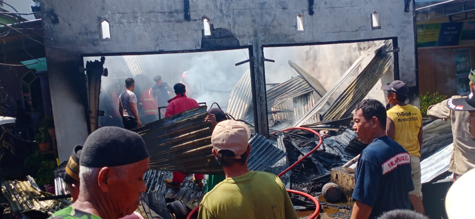 Api kemudian merembes ke dalam rumah dan kios menghabiskan seluruh jualannya. Warga setempat berusaha membantu memadamkan dan mengamankan barang-barang yang masih bisa diselamatkan.