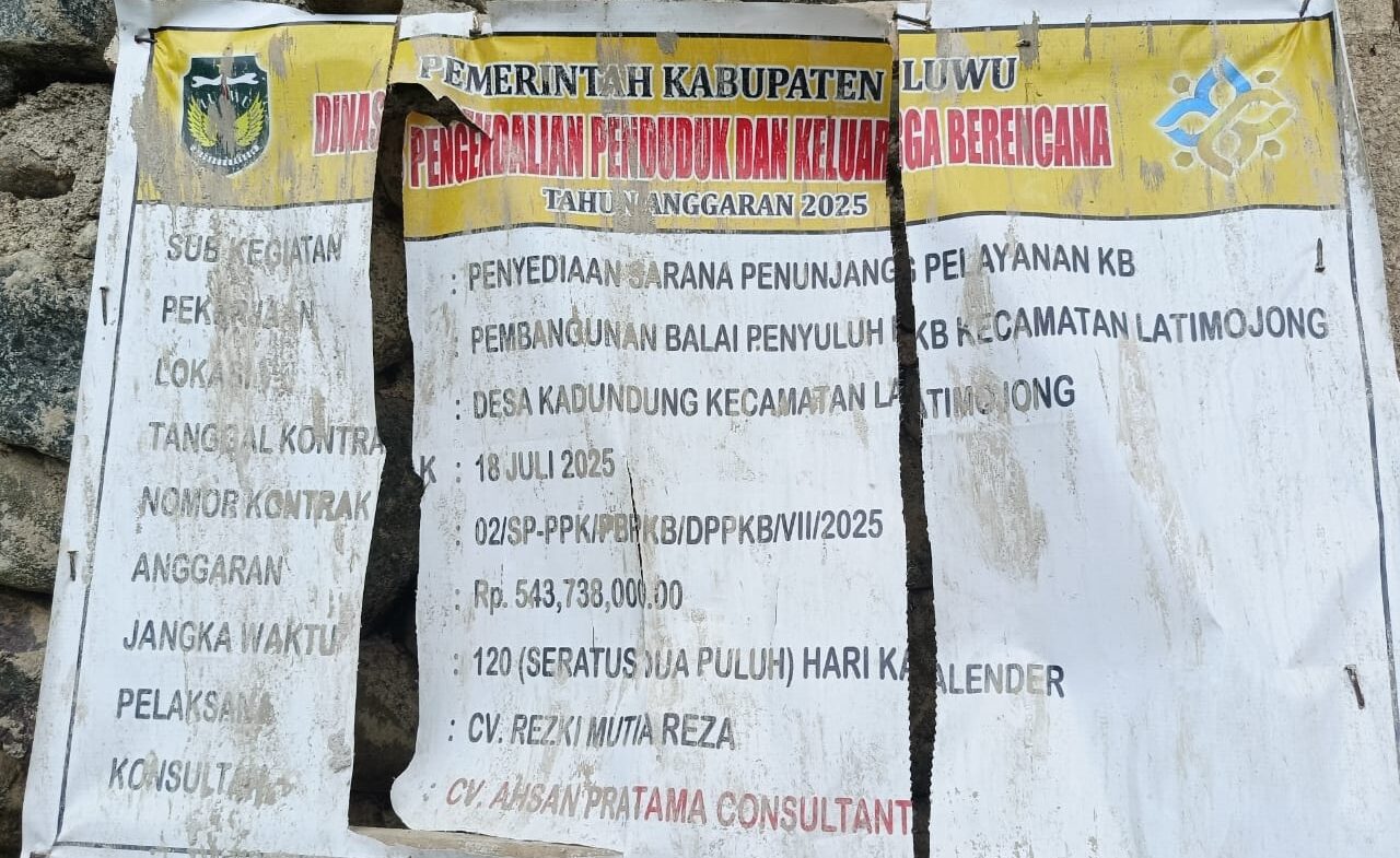 Informasi yang dihimpun, pemilik dari pekerjaan pembangunan penyuluh KB itu ialah anggota Polres Luwu. Informasi lain juga menyebut bahwa, perusahaan CV Rezki Mutia Resa selaku pelaksana pada pekerjaan itu hanya dipinjam pakai oleh anggota yang dimasuk dengan nomor kontrak 02/SP-PPK/PBPKB/DPPKB/VII/2025.