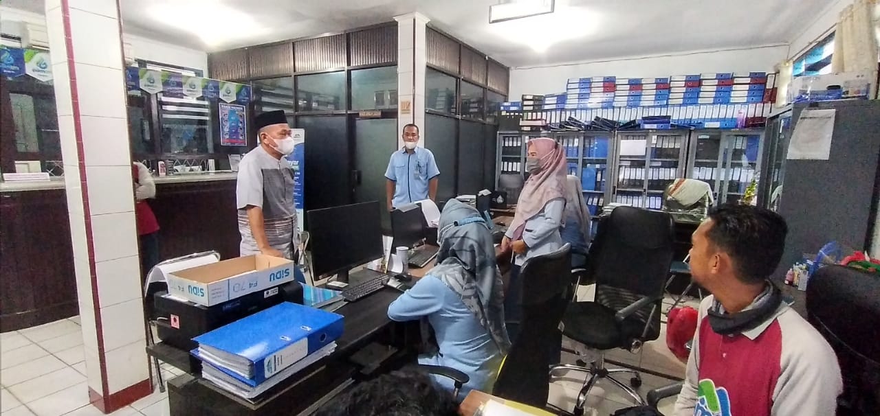 PALOPO — Hari pertama berkantor, Dirut PAM TM yang baru saja dilantik, Ir. Tawwakkal silaturahmi dari ruangan ke ruangan di Kantor Pusat PAM TM Palopo, sebagai perkenalan ke masing-masing karyawan.