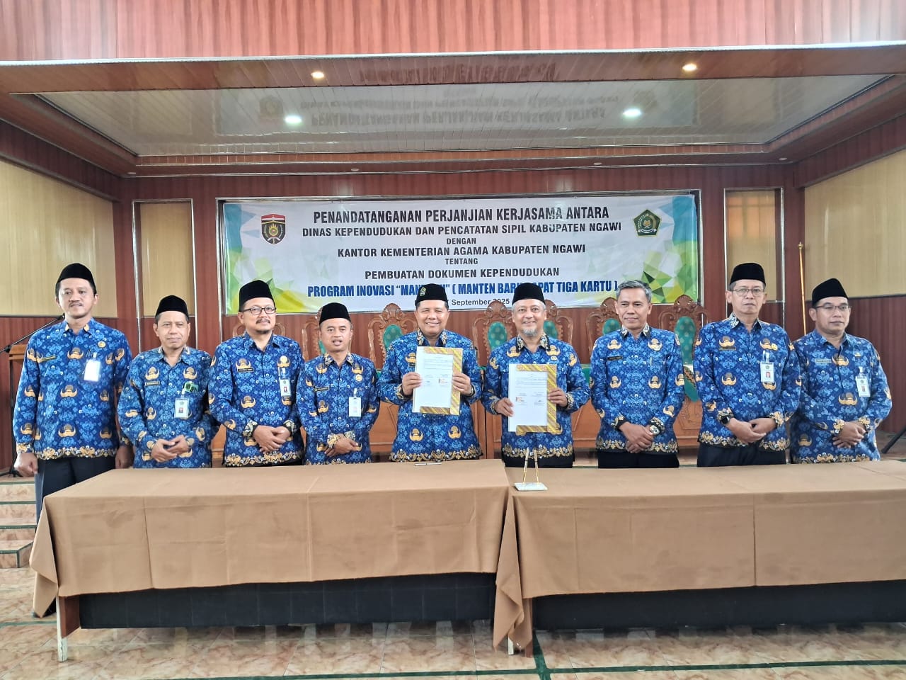 NGAWI – Mantuku (Manten Baru Dapat Tiga Kartu) merupakan program inovasi yang diprakarsai oleh Dispendukcapil Kabupaten Ngawi yang bekerja sama dengan Kantor Kementerian Agama (Kemenag) Kabupaten Ngawi.