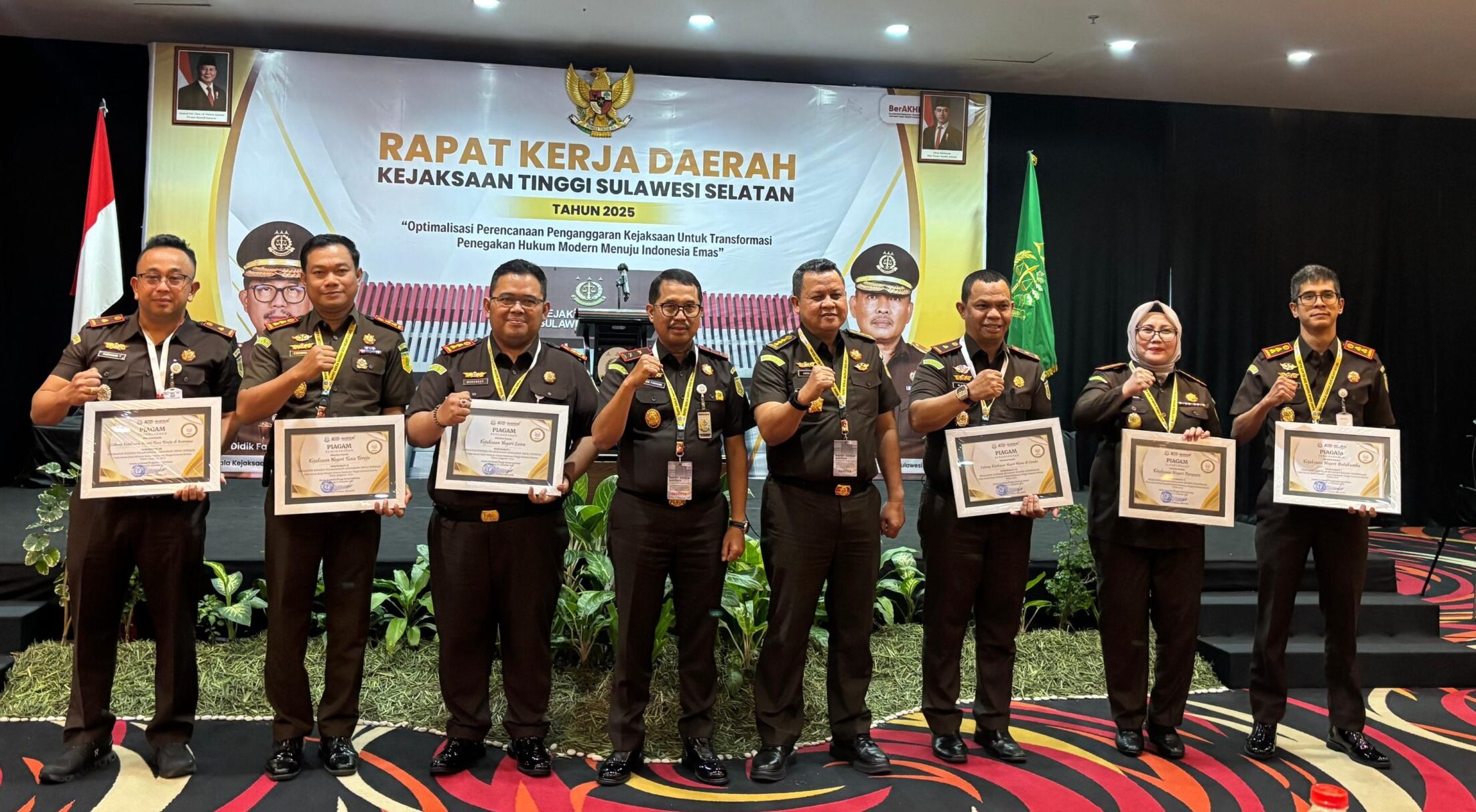 Makassar- Kejaksaan Negeri Luwu borong tiga penghargaan prestisius. Penghargaan itu diterima oleh Kepala Kejaksaan Negeri (Kajari) Luwu Muhandas Uliem saat mengikuti Rapat Kerja Daerah Kejaksaan Tinggi Sulawesi Selatan yang digelar pada Kamis (11/12/2025) kemarin.
