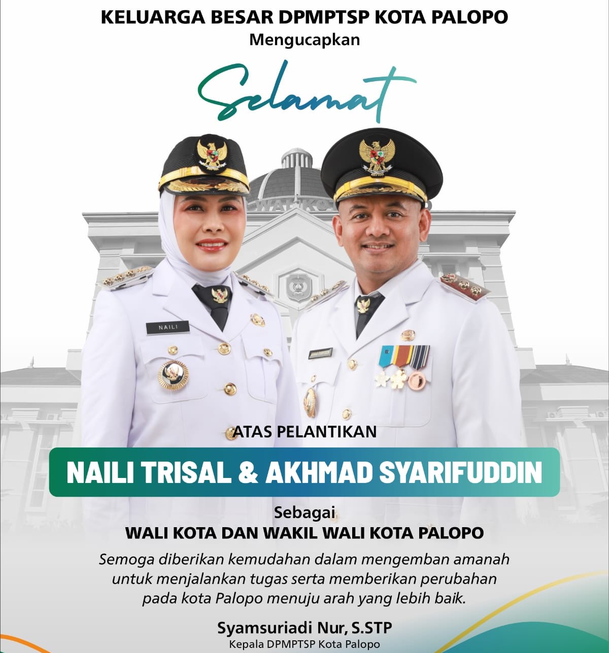 PALOPO – Kepala Dinas Penanaman Modal dan Pelayanan Terpadu Satu Pintu (DPMPTSP) Kota Palopo, Syamsuriadi menyampaikan ucapan selamat dan sukses atas pelantikan Wali Kota dan Wakil Wali Kota Palopo yang baru.
