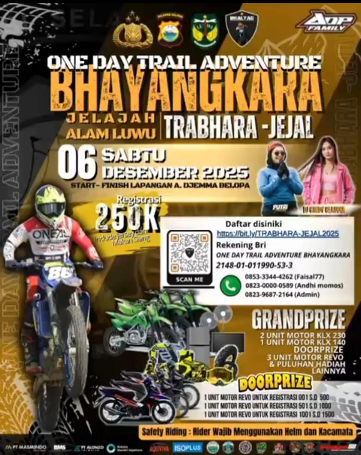 LUWU- Beredar issue sejumlah Kepala Desa, Kepala OPD, Kepala Sekolah, hingga Kontraktor dipaksa membeli tiket event one day trail Bhayangkara dengan tema “Trabhara-Jejal” yang akan digelar oleh Polres Luwu pada 6 Desember 2025.