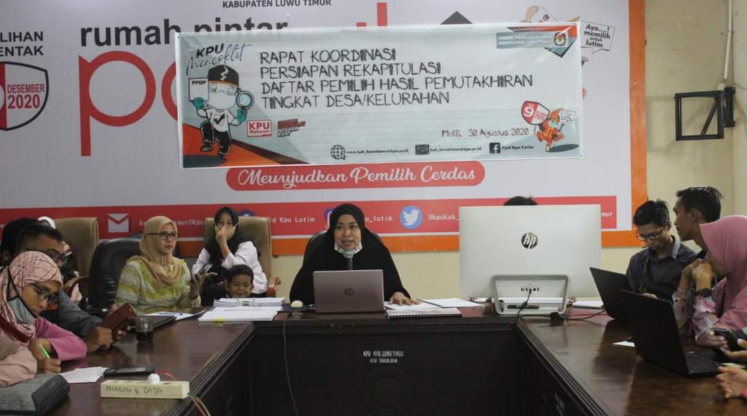 MALILI – Divisi Divisi Perencanaan, Data dan Informasi KPU Kabupaten Luwu Timur Kembali menggelar Rapat Koordinasi Persiapan Rekalipitulasi Daftar Pemilih Hasil Pemutakhiran (DPHP) Tingkat Desa/Kelurahan, bertempat di Media Center, Minggu, (30/8/2020).