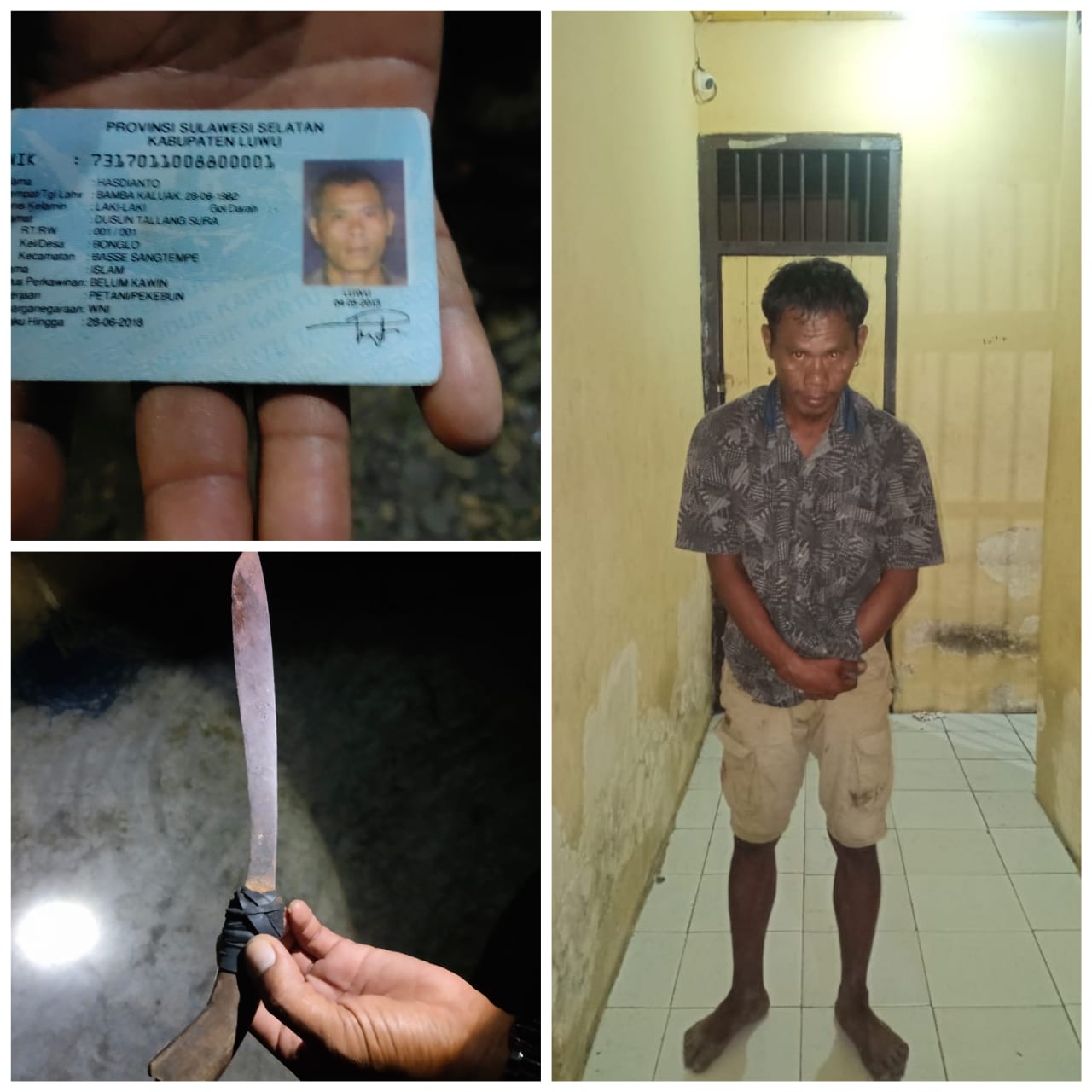 Ia diamankan lantaran menikam tetangganya, Andang, sebanyak dua kali menggunakan badik. Tikaman mengenai di tangan dan pinggang sebelah kiri. Untungnya, korban masih sempat diselamatkan setelah mendapat perawatan medis di Puskesmas Ponrang.