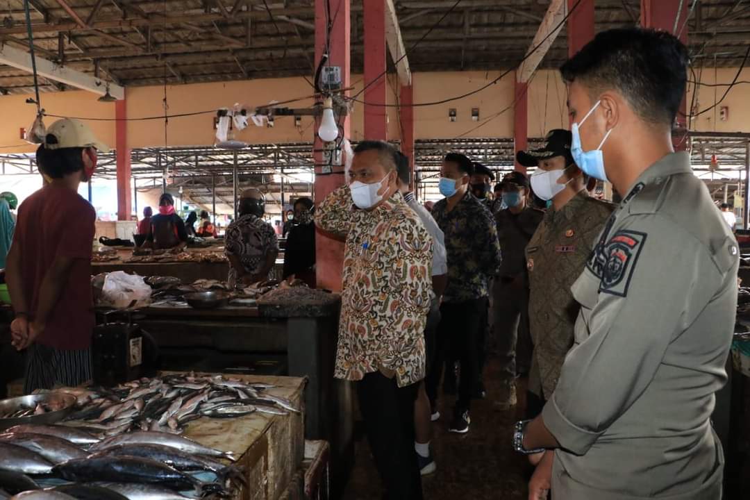 LUTIM – Memastikan penerapan protokol kesehatan (Prokes), pencegahan penyebaran virus Corona atau Covid-19. Wakil Bupati Luwu Timur, H Budiman memantau aktivitas di Pasar Sentral Malili, Kamis (04/03/2021).