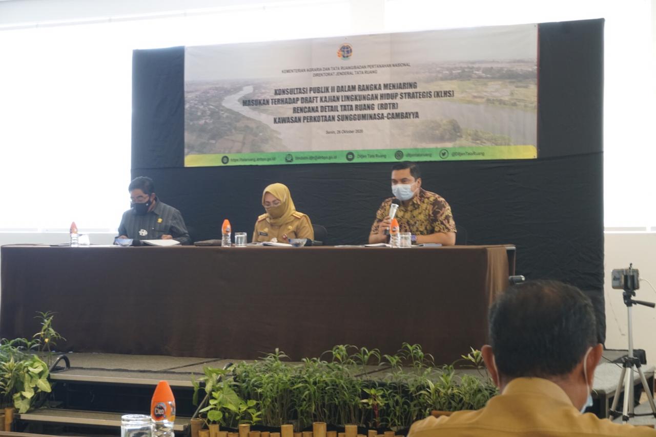 GOWA — Penyusunan Rencana Detail Tata Ruang (RDTR) Kawasan Perkotaan Sungguminasa-Cambayya untuk meningkatkan kualitas tata ruang melalui upaya perwujudan penataan ruang berbasis mitigasi bencana /pengurangan risiko bencana (PRB) dengan memperhatikan potensi kawasan, kini memasuki pembahasan atau konsultasi publik kedua.