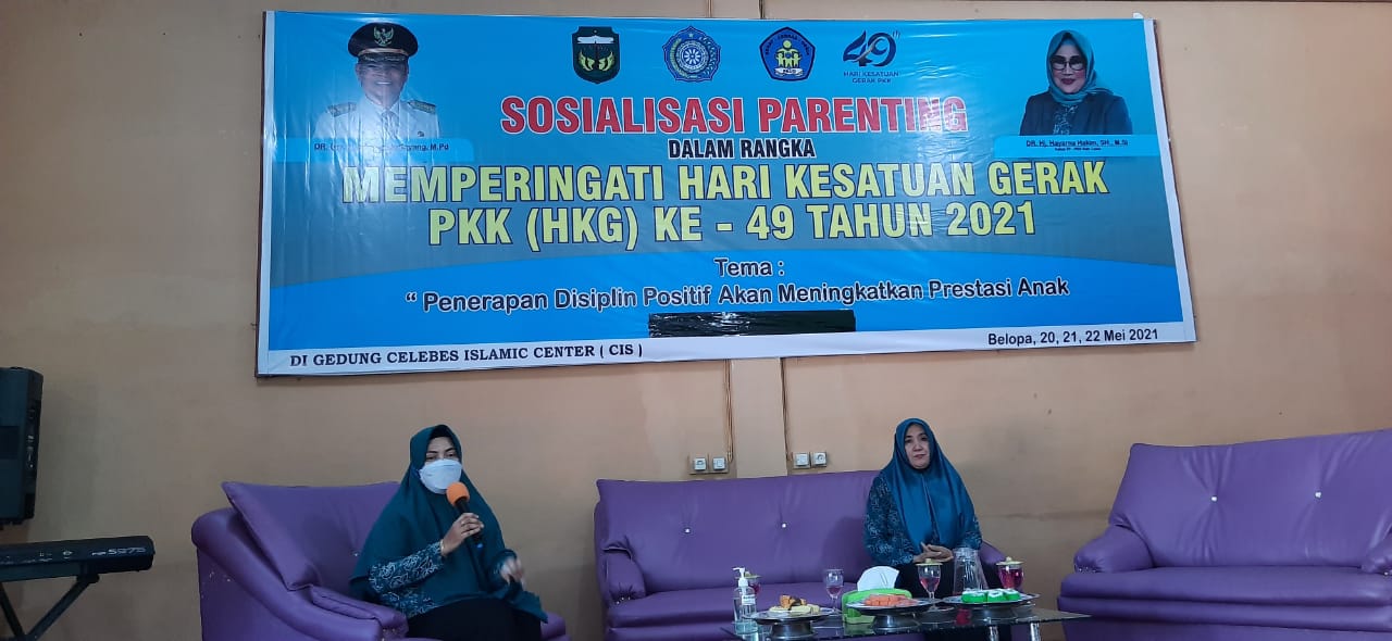 BELOPA — Memperingati Hari Kesatuan Gerak (HKG) PKK Ke-49 Tahun 2021, Tim Penggerak Pemberdayaan Kesejahteraan Keluarga (TP PKK) Kabupaten Luwu menggelar kegiatan Sosialisasi Parenting di aula Gedung Celebes Islamic School (CIS), Kamis (20/5/2021). Kegiatan ini dilaksanakan selama 3 hari dengan tetap menerapkan protokol Kesehatan