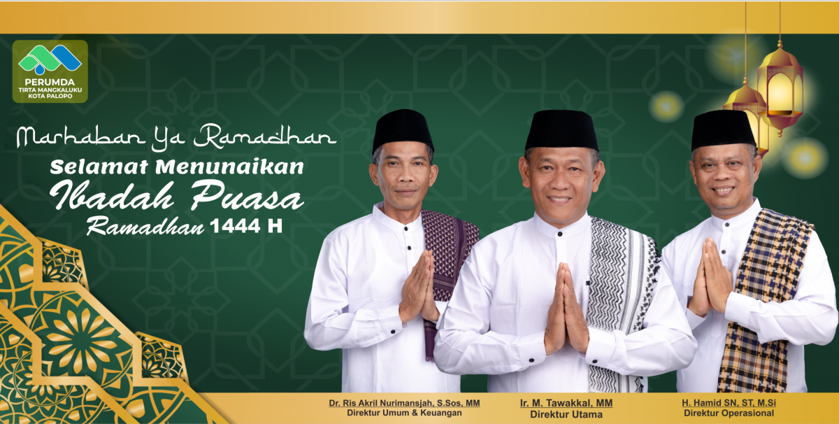 “Kami atas nama Keluarga Besar PERUMDA Tirta Mangkaluku Kota Palopo mengucapkan selamat menyambut bulan Ramadhan 1444 Hijriah. Mari mempersiapkan diri untuk beribadah dengan optimal. Semoga kita dipertemukan dengan Ramadhan dan dapat meraih berbagai keutamaannya. Mari jadikan bulan Ramadhan ini sebagai momentum peningkatan ketakwaan kepada Allah SWT,” tandas Tawakkal. (*)