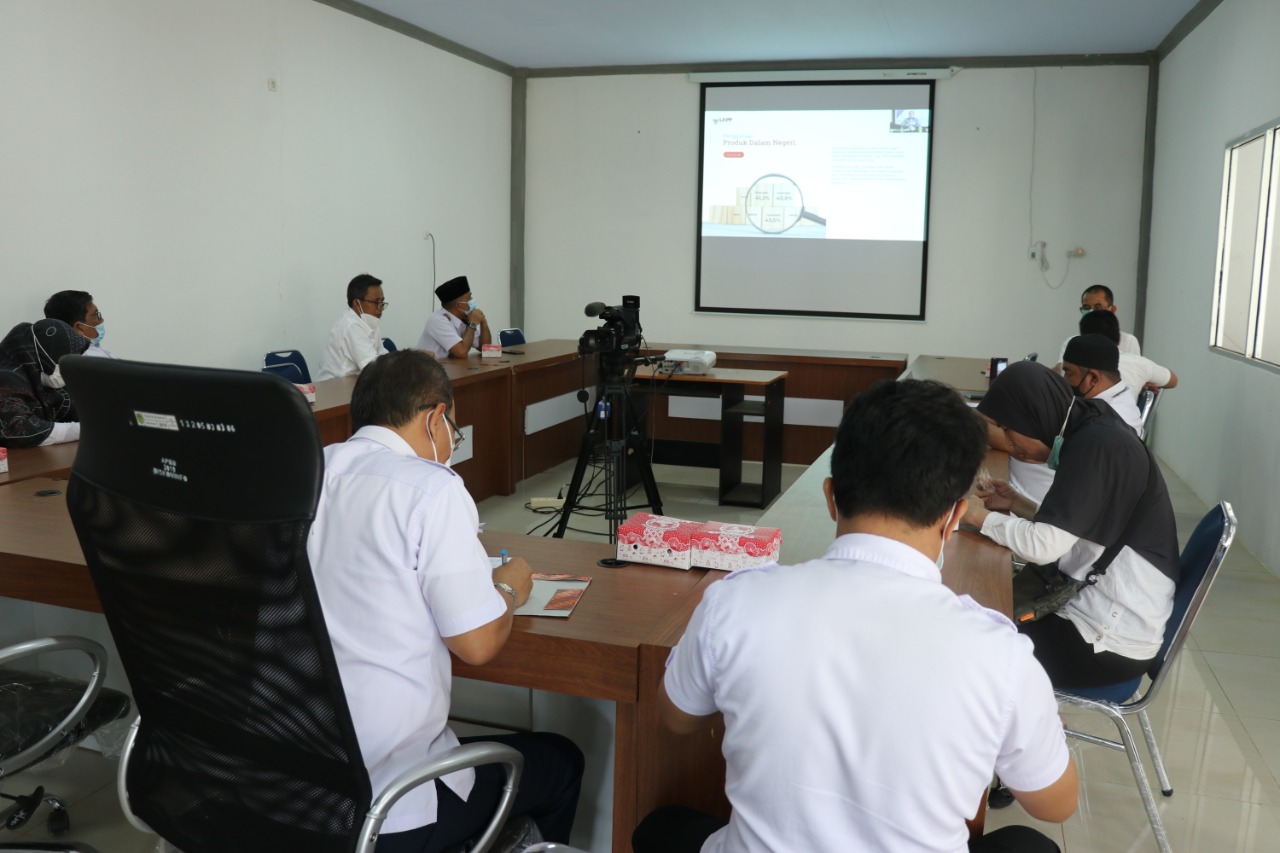 LUTIM – Plh Bupati Luwu Timur, H Bahri Suli didampingi kepala OPD lingkup Pemkab Lutim mengikuti Sosialisasi Peraturan Presiden (Perpres) Nomor 12 Tahun 2021 tentang Perubahan Atas Perpres No 16 Tahun 2018 tentang barang/jasa Pemerintah, di Aula Media Center Dinas kominfo, Rabu (24/02/2021).