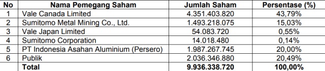 Setelah Transaksi selesai maka struktur kepemilikan saham PT Vale menjadi sebagai berikut: