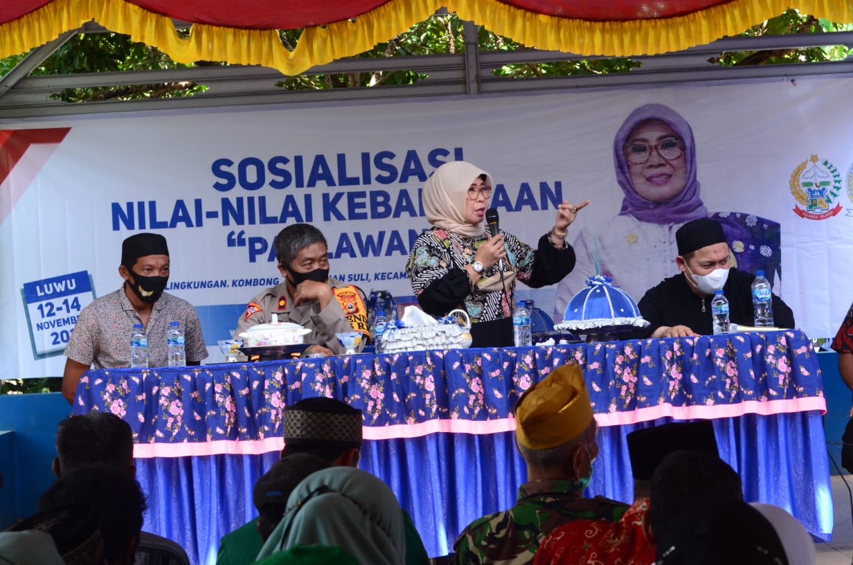 BELOPA — Anggota DPRD Sulsel, Fadriaty AS menggelar sosialisasi nilai-nilai Kebangsaan dengan Tema “ Pahlawan “, di Kelurahan Suli, Kecamatan Suli, Kabupaten Luwu, Minggu (14/11/2021).