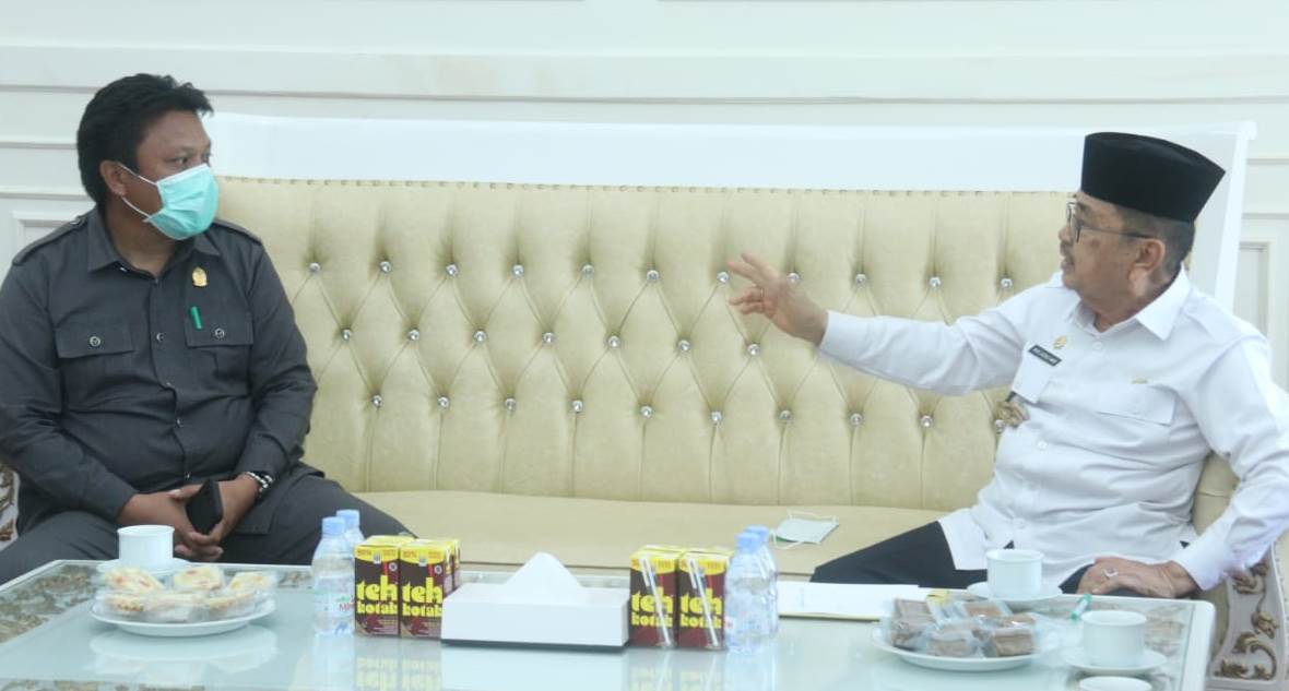 PALOPO — Walikota Palopo, HM Judas Amir, menerima kunjungan Ketua DPRD Kabupaten Luwu, Rusli Sunali, di ruang kerjanya Rabu (17/3/2021).